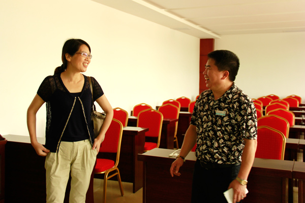 李红教授(左)一行在华维董事长吕名礼(右)的陪同下,参观了华维新工厂。