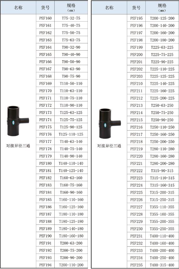 对接式PE管热熔管件系列。