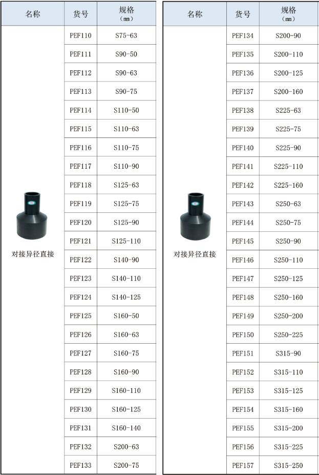 对接式PE管热熔管件系列。