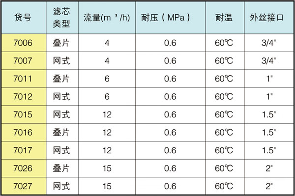 特别加长的滤芯(加大了过滤表面积),如120目的2"单体叠片过流量可达60 m3/h(其他品牌同等规格过流量为50m3/h)。