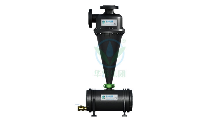 原水从直立的圆锥形罐体的侧向(进水管)进水,在水流压力的作用下做离心运动,推动泥沙及其它密度较高的固体颗粒向管壁移动,形成旋流,比重较大的砂粒落入过滤器底部横置的沉砂罐、净水从锥形罐体顶端(出水口)送出,即完成水砂分离。底部沉砂罐须定期进行清理,时间按当地水质情况而定。